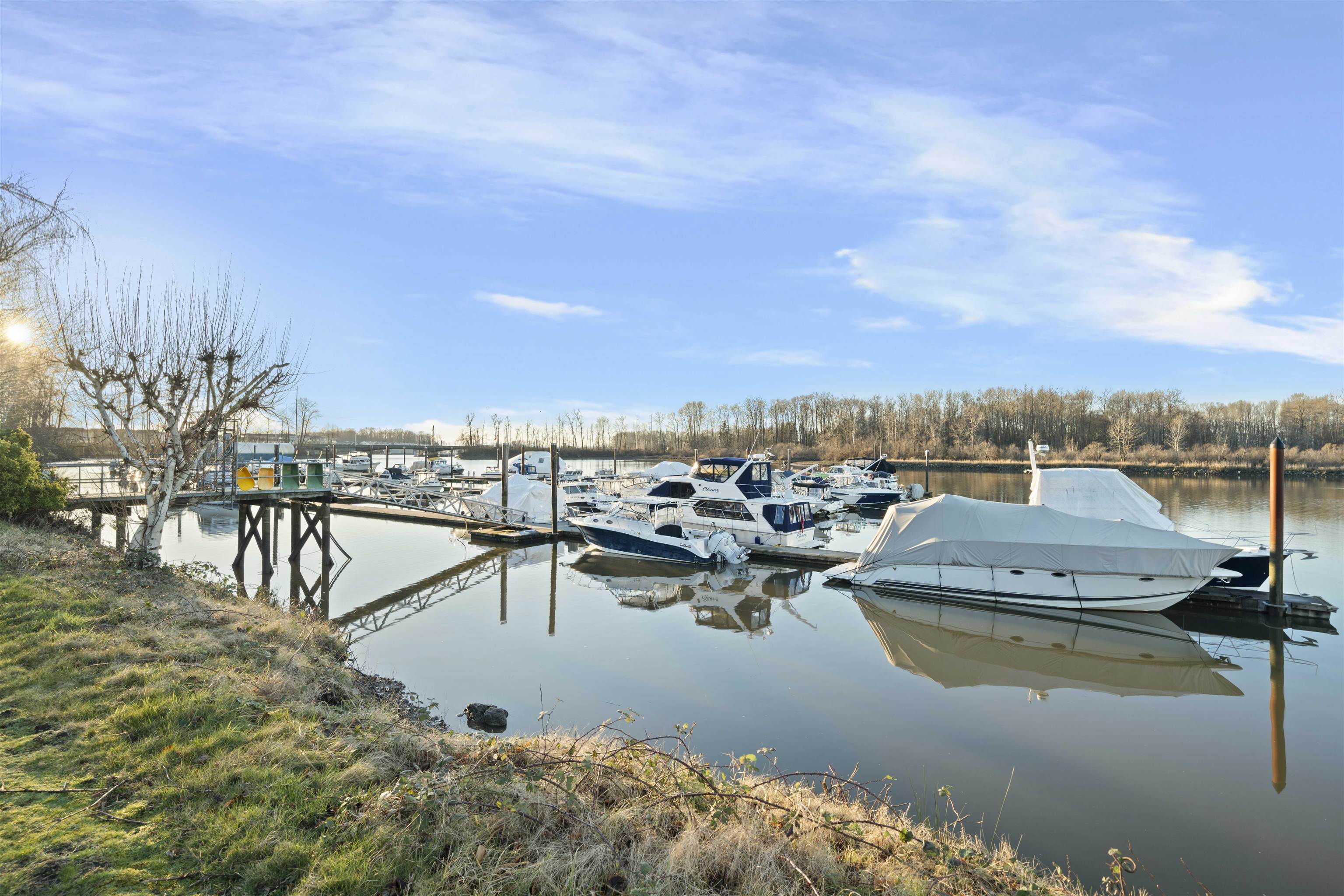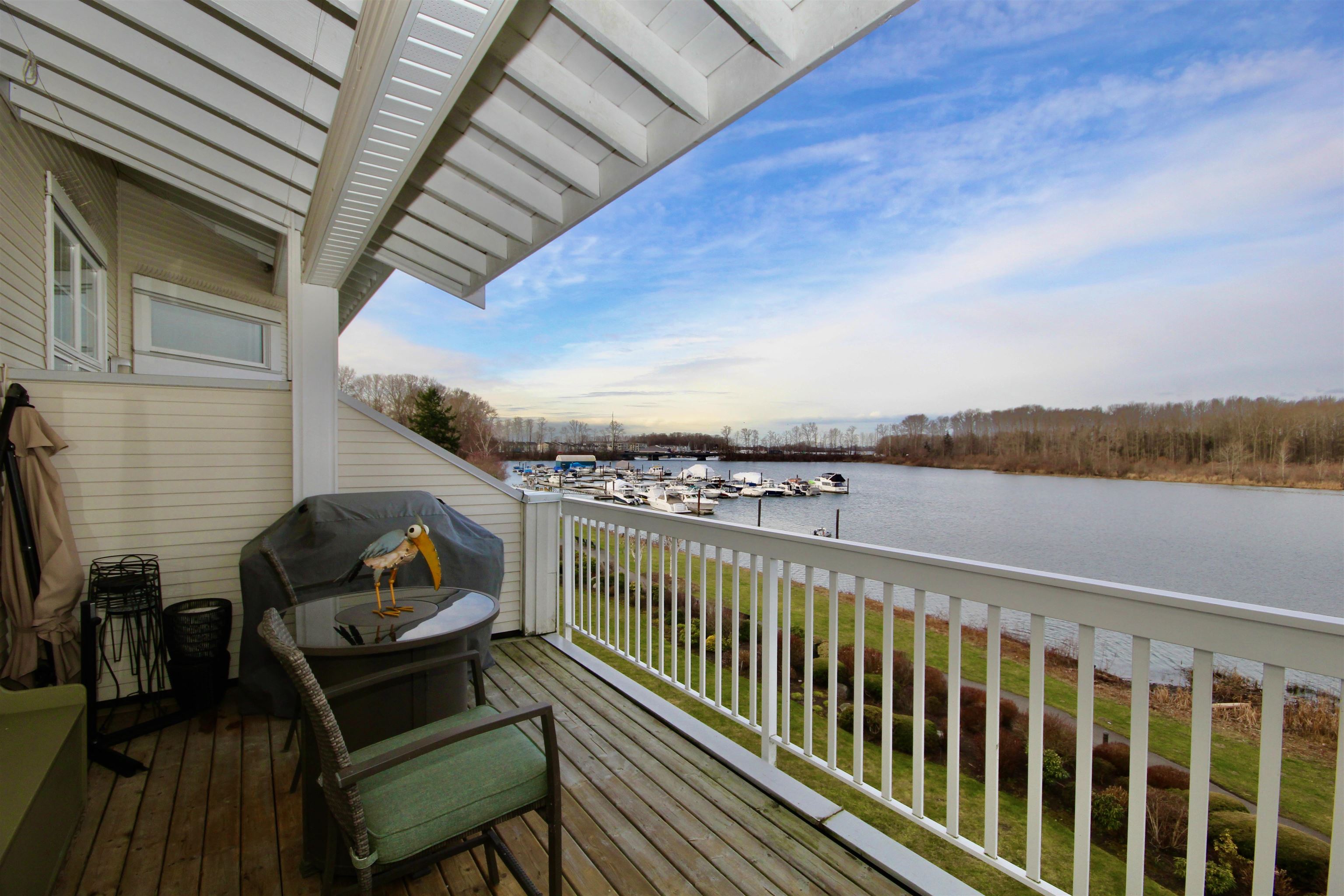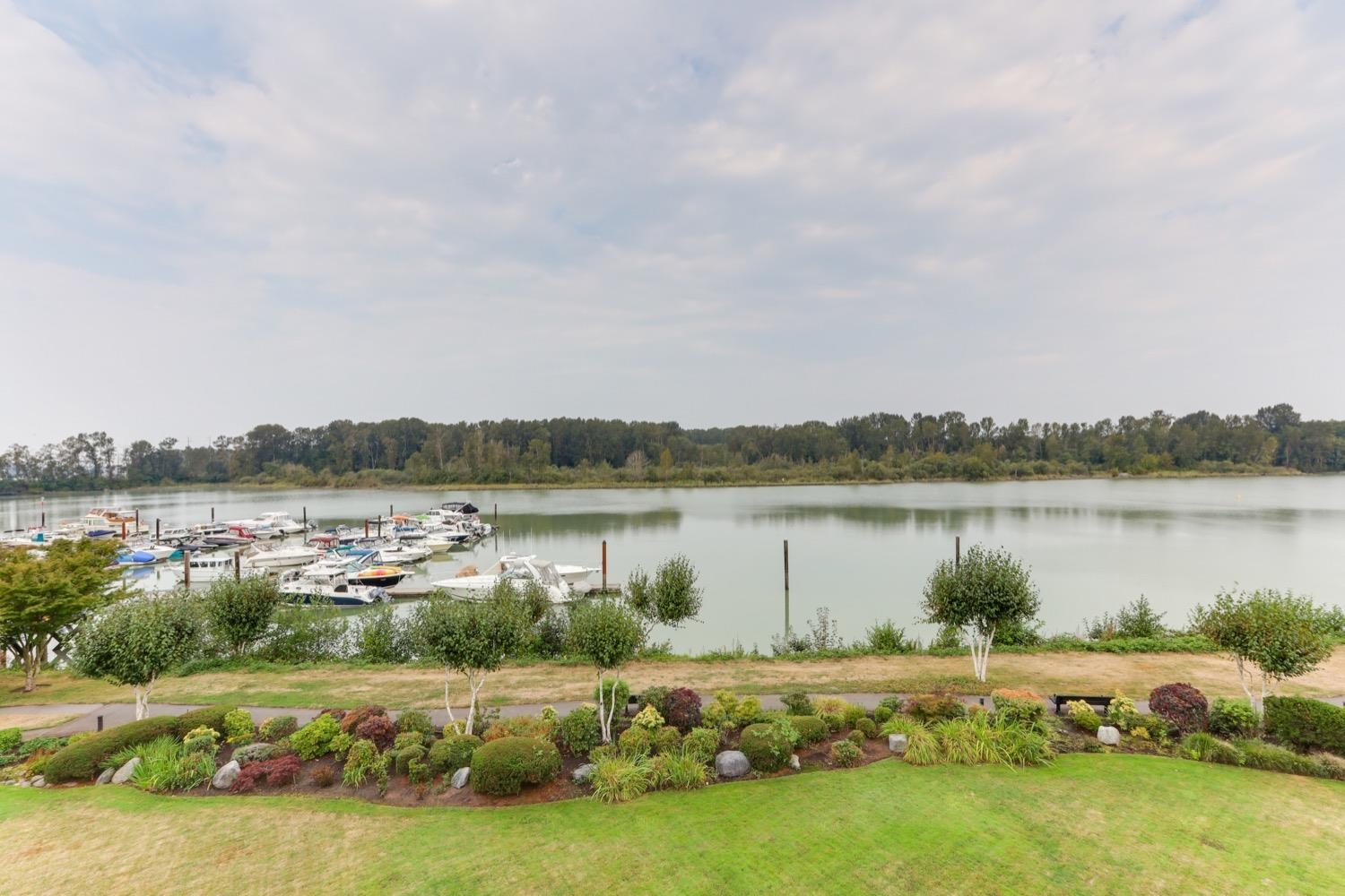 The Residence at River House is a fantastic water front condo with picturesque views surrounded by Fraser River, Marina, Delta Farmlands and NS Mountains. A spacious 2 bedroom and den home ideal for downsizing empty nesters and small families or professional couples offering an excellent layout with separated bedrooms and 2 full bathrooms including a spacious ensuite with separate soaker tup and shower. Highlighted with 9 foot ceiling, 2 way gas fireplace shared by the living room and primary bedroom, galley chefs kitchen with SS appliances, Maple shaker cabinets and breakfast bar and a large covered deck to relax and entertain. Located on the Millennial trail, walk or ride to Deas Island Park and nearby pub and craft breweries, and restaurants. (id:23770)