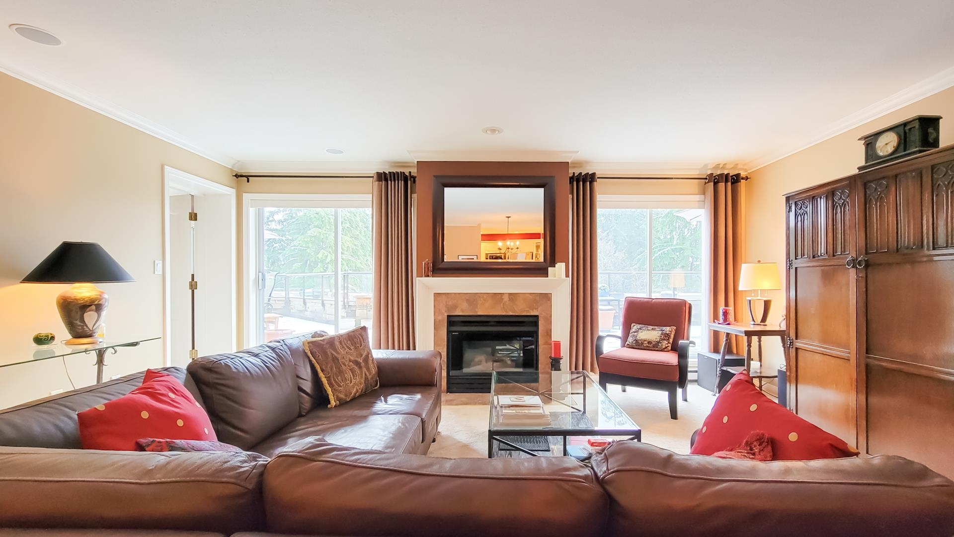 Live where adventure begins at your door. Catch the Mt. Seymour shuttle across the street for ski days, stroll with your clubs to Seymour Golf Club, or hit the Old Buck trailhead and North Shore mountain bike networks just minutes away. Deep Cove´s kayaking and paddleboarding are a quick drive-this is true North Shore living. This southwest corner penthouse is flooded with light thanks to vaulted ceilings, floor-to-ceiling windows, and skylights. Relax on the sunny south-facing balcony with gas hookup, or unwind in front of a cozy gas fireplace. Enjoy two spacious bedrooms, two full baths, and impressive storage, including your own private 8'10" x 6'4" gear room with soaring ceilings. Plus, rare three-car parking. The gourmet kitchen features quartz counters, stainless steel appliances, a pantry, and modern finishes. With fresh paint, updated blinds, and a new washer/dryer, it´s move-in ready. This home is more than a place to live...it´s a North Shore lifestyle! (id:23770)